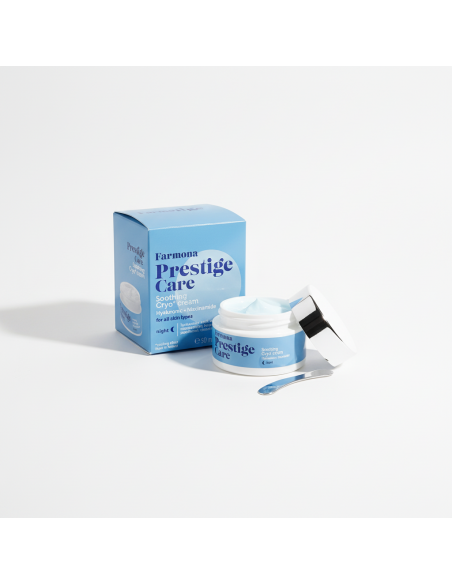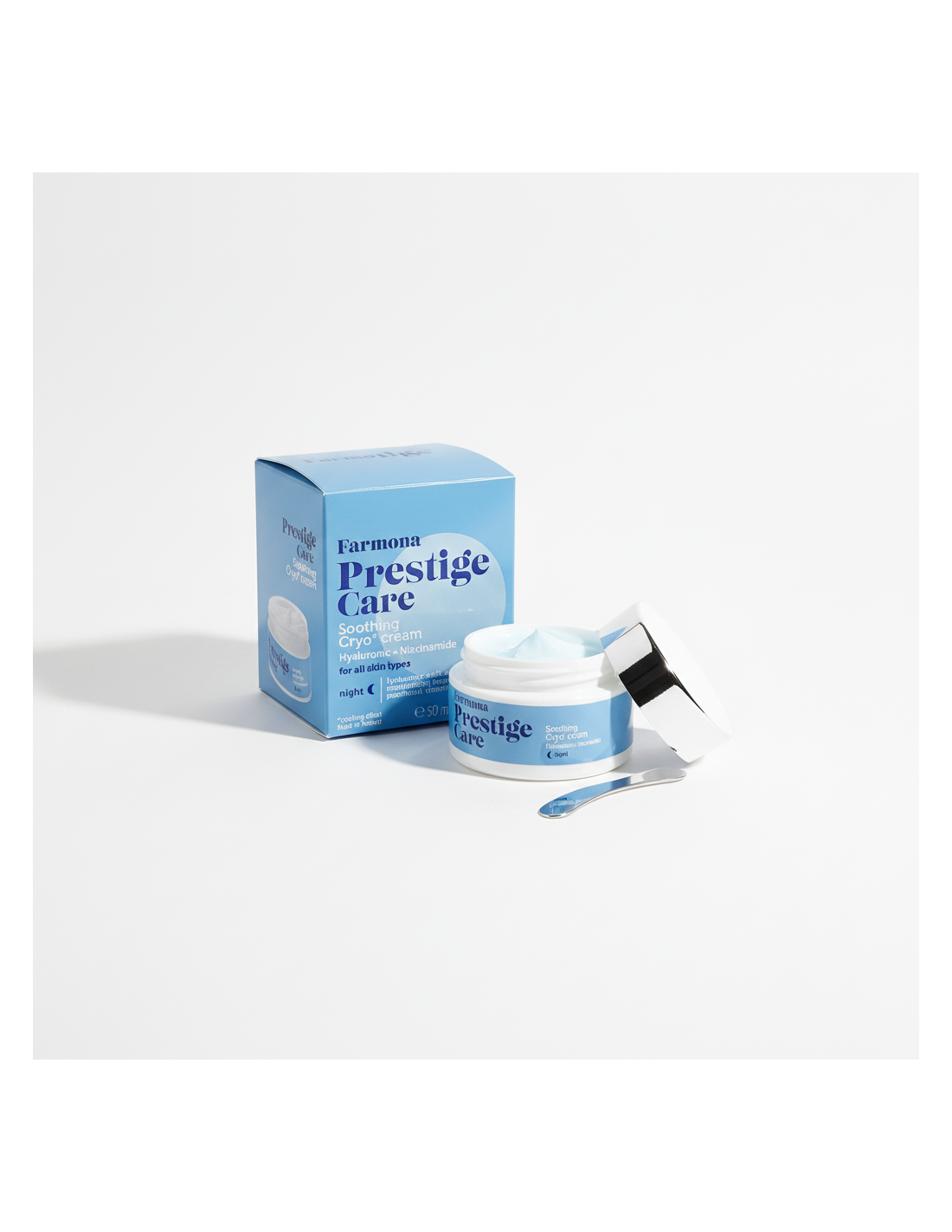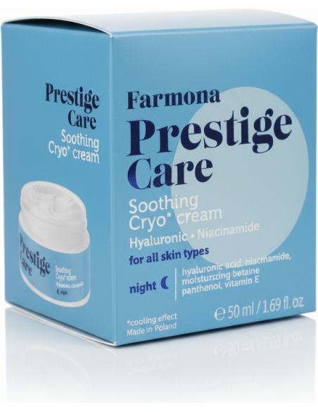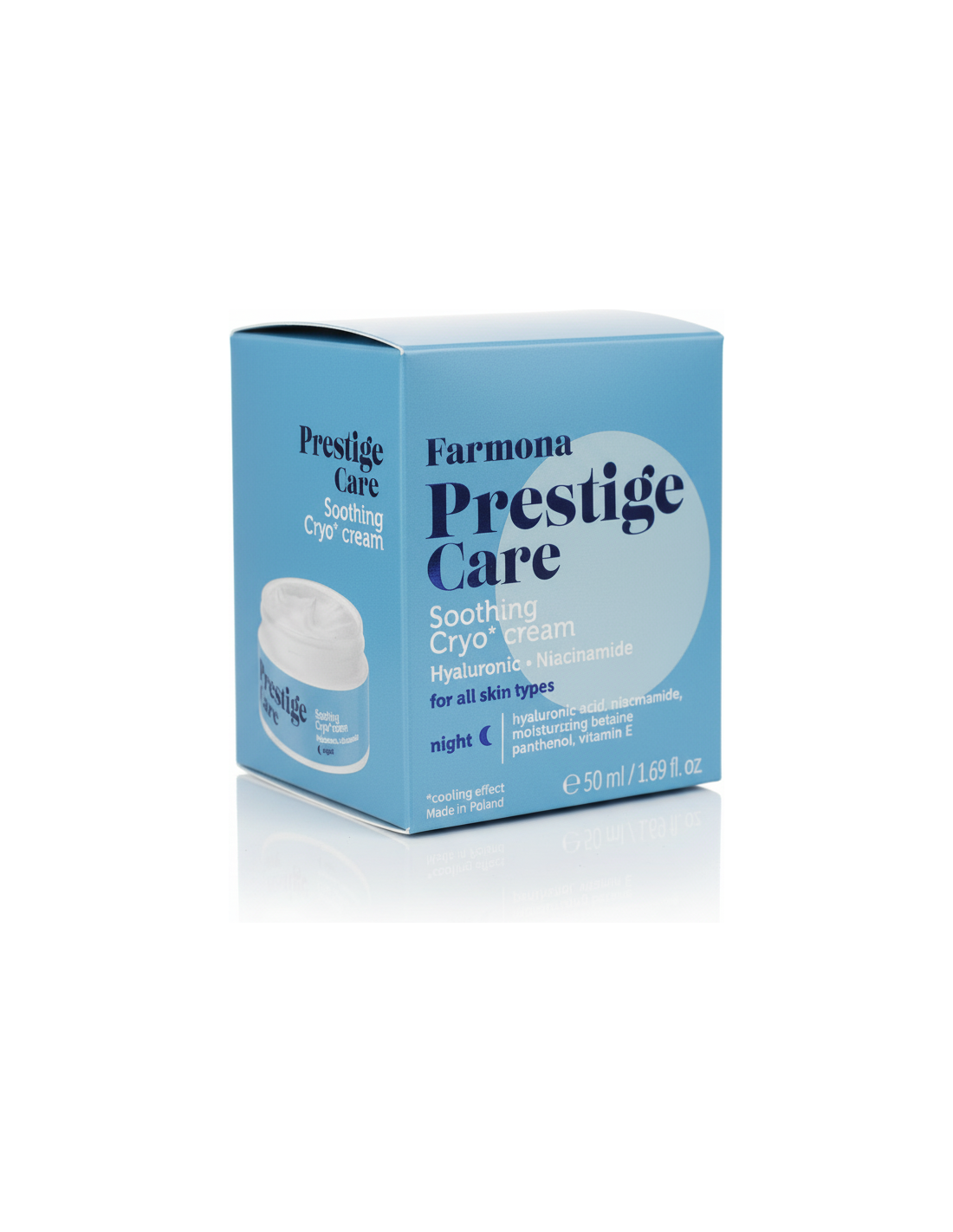 PRESTIGE CARE Smoothing CRYO nakts krēma gēls sejai, ar hialuronu, niacinamīdu, pantenolu, E vitamīnu, ar atvēsinošu efektu, 50 ml