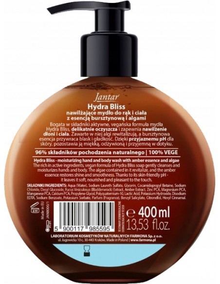 JANTAR COLLAGEN BOOST Atjaunojošas ķermeņa un roku ziepes ar dzintara esenci un jūras kolagēnu, 400 ml