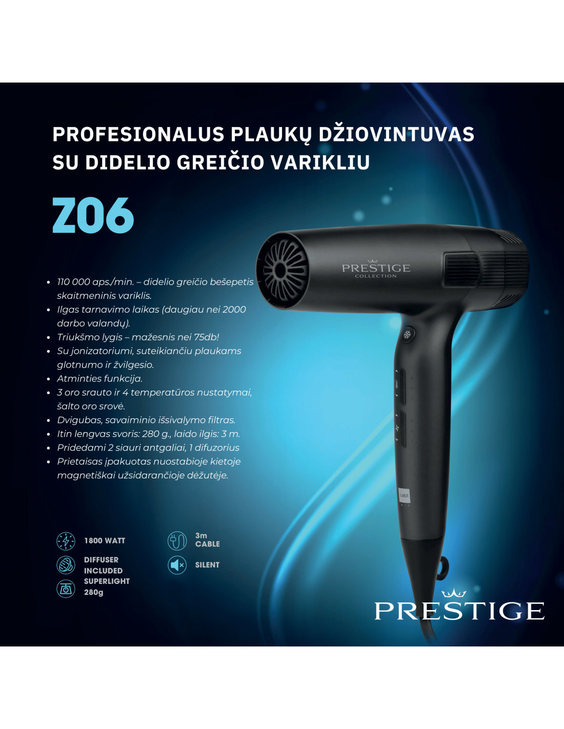 110 000 apgr./min – ātrgaitas bezsuku digitālais motors.
