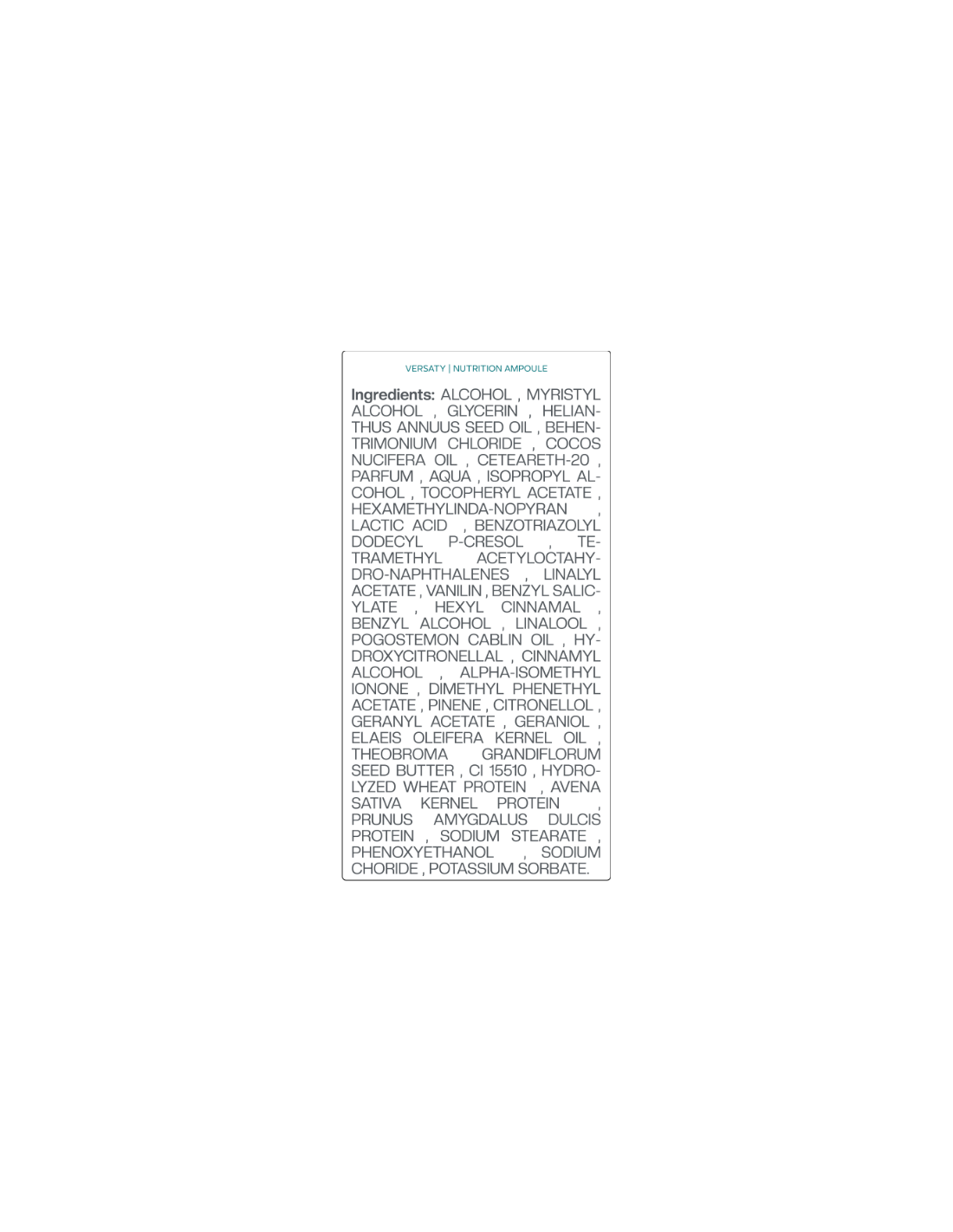 2. SOLIS - Uzklājiet dažus pilienus izvēlētās VERSATY ampulas monodevas satura uz plaukstām, berzējiet tos kopā (uzsildiet), lai uz plaukstām veidojas bieza silta matu maskas konsistences masa, un sadaliet to tikpat vienmērīgi. pēc iespējas uz matiem visā garumā. Turiet 3-5 minūtes, noskalojiet ar ūdeni;