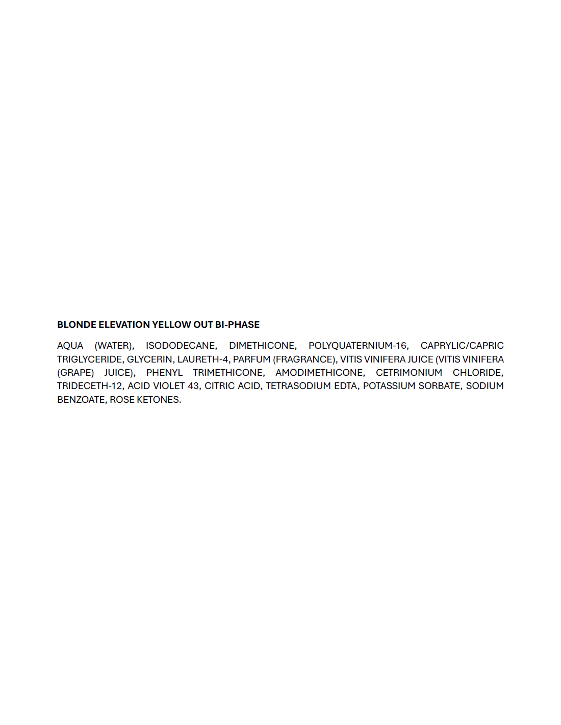 BLOND ELEVATION YELLOW OUT - Profesionāla līnija, kas īpaši izstrādāta, lai izceltu, izgaismotu, atdzesētu toņus un neitralizētu nevēlamus dzeltenus un dzeltenus no gaišiem, balinātiem, balinātiem, krāsotiem un sirmiem matiem.