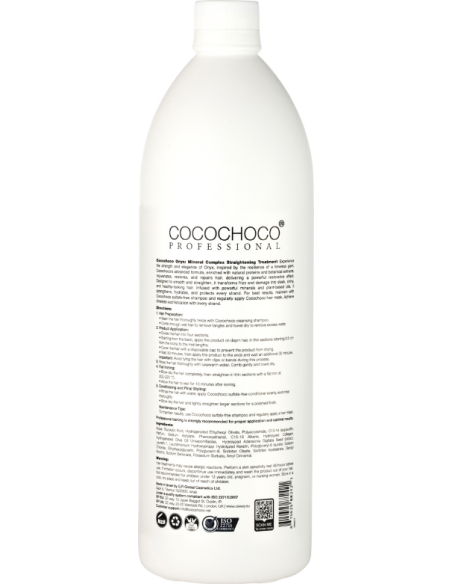 Profesionāļiem paredzētais onikss pārveido bojātus, sprogainus vai nepaklausīgus matus, piešķirot tiem gludu, ilgstošu spīdumu un vitalitāti. Bagātināta ar atjaunojošām sastāvdaļām, tā atjauno matus no saknēm līdz galiem, padarot tos veselīgākus, stiprākus un spīdīgākus pēc katras lietošanas reizes. Sasniedziet salona līmeņa matu taisnošanu un atjaunojiet to dabisko skaistumu. Lai iegūtu ilgstošu rezultātu, izmantojiet CocoChoco sulfātu nesaturošo, pH līdzsvaroto sārmaino šampūnu un kondicionieri. Ar Onyx jūs baudīsiet perfektu spēka, apjoma un mūžīgas izsmalcinātības kombināciju.