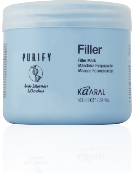 PURIFY FILLER ir visaptveroša profesionālu matu kopšanas produktu sērija trausliem, novājinātiem matiem, kas ir pakļauti lūšanai un drūpēšanai (piemēram, ja tie tiek pakļauti balināšanai, apgaismošanai, krāsošanai un agresīviem pasākumiem), piešķirot matiem būtisku izturību, elastību, blīvumu un apjomu. cīnās ar novecošanās pazīmēm (pretnovecošanas efekts), piepildot matu dziļo struktūru ar ekskluzīvu hialuronskābes un keratīna kompleksu, kas darbojas pēc nepieredzētas sinerģijas principa.
