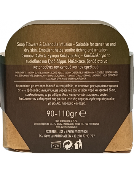 Roku gatavotas ziepes ar kliņģerīšu ziediem un kliņģerīšu ekstraktu