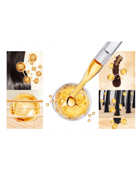 Atjauno bojājumus: Atjauno bojātās matu šķiedras no iekšpuses, uzlabojot matu tekstūru un stiprību.