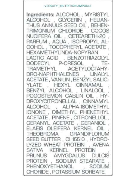 ШАГ 2 - Нанесите несколько капель содержимого выбранной монодозы ампулы VERSATY на ладони, разотрите (согрейте) так, чтобы на ладонях образовалась густая теплая масса консистенции маски для волос, и равномерно распределите ее. как можно на волосах по всей длине. Подержать 3-5 минут, смыть водой;