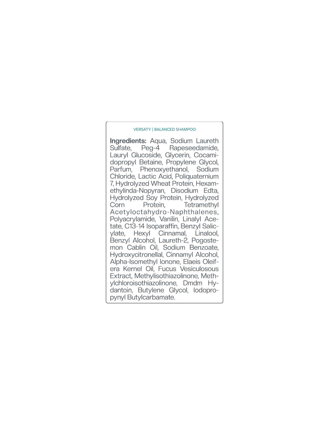 Сбалансированный ежедневный шампунь и кондиционер VERSATY PRO содержат: растительные протеины, масло ожона, экстракты морских водорослей, масло пачули, поликватерниум-7 и поликватерниум-10, молочную кислоту.