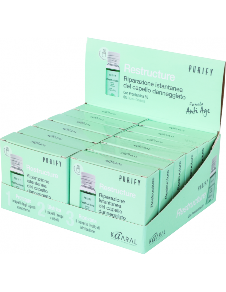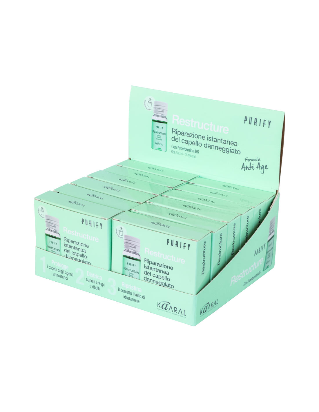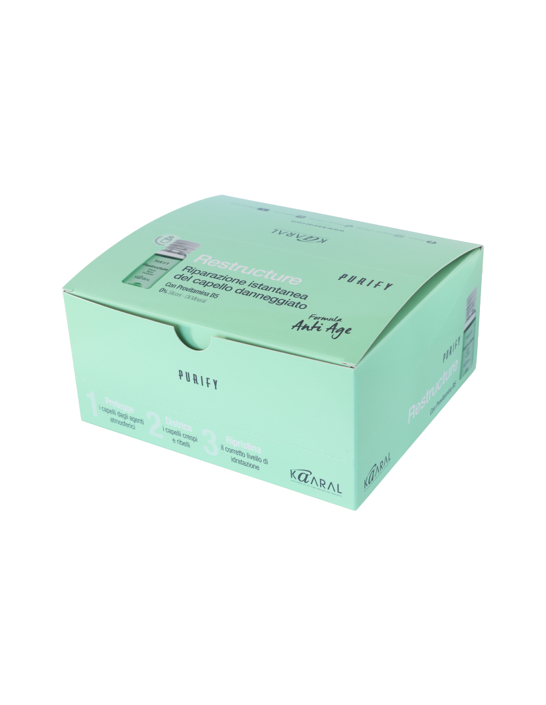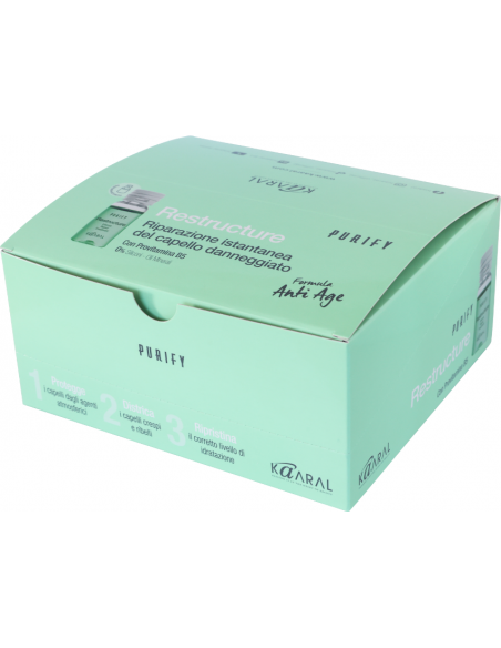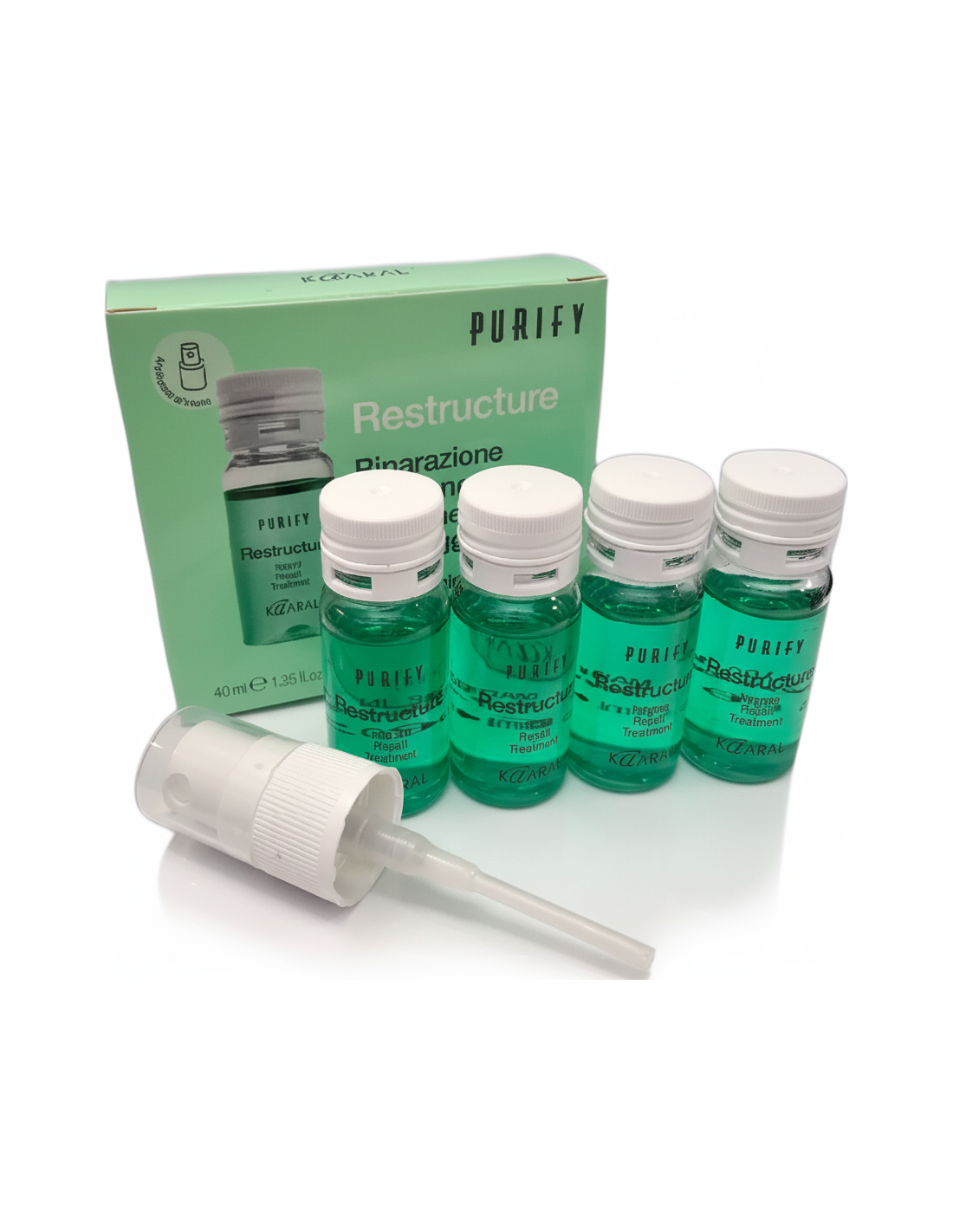 Постоянное применение лосьона PURIFY RESTRUCTURE обеспечивает длительный восстанавливающий и укрепляющий волосы накопительный эффект.