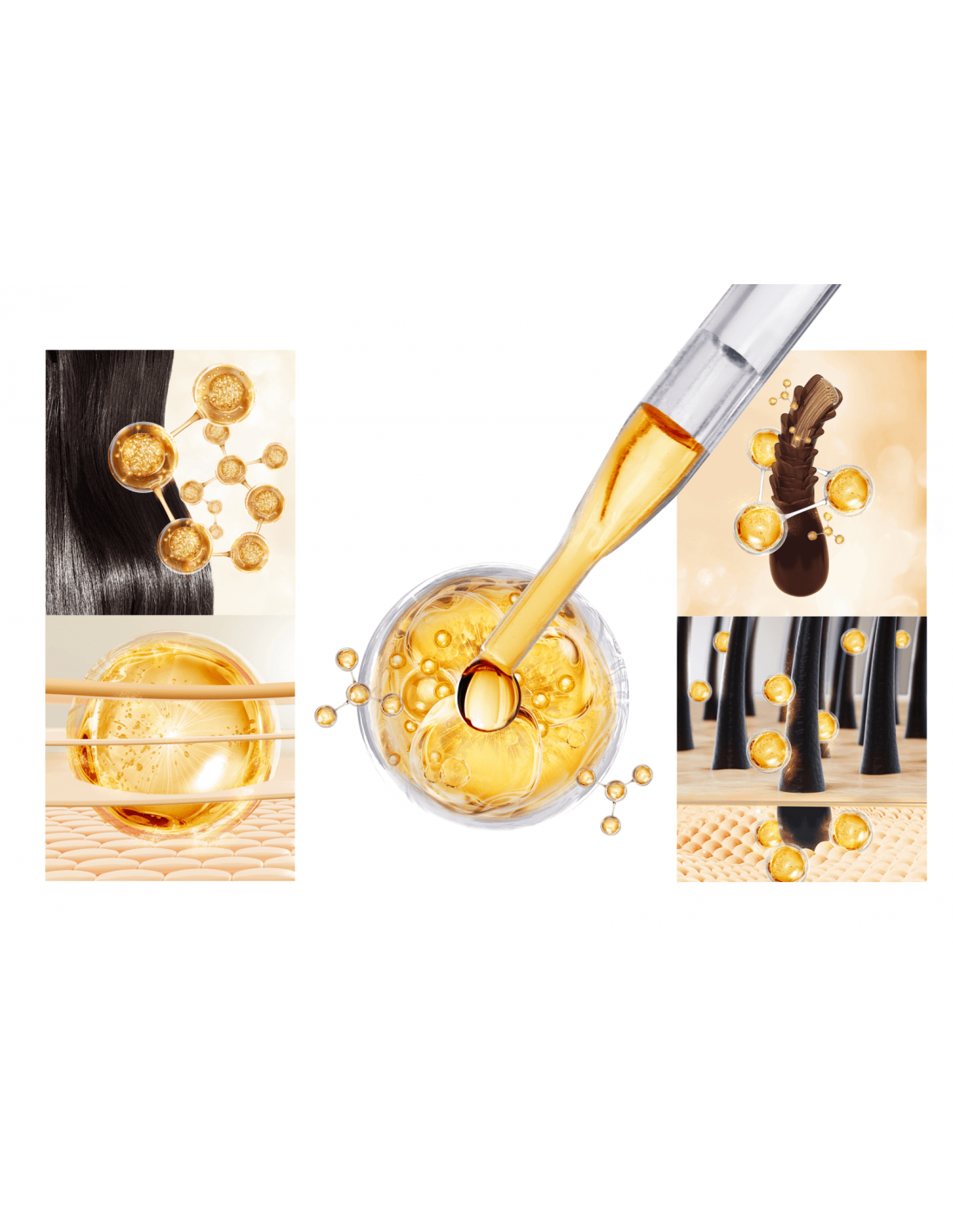 Устраняет повреждения: восстанавливает поврежденные волокна волос изнутри, улучшая текстуру и прочность волос.